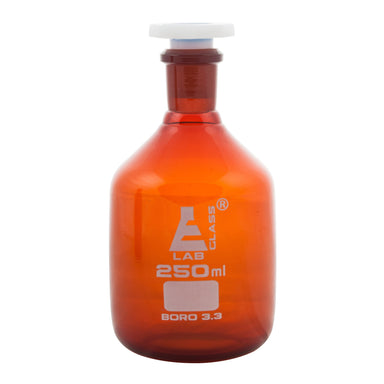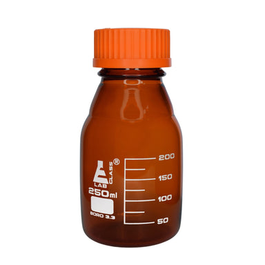 250 ml amber reagent bottle Made from high quality 3.3 borosilicate glass 50 - 200 ml graduation range (25 ml graduations) Screw cap included (GL4...