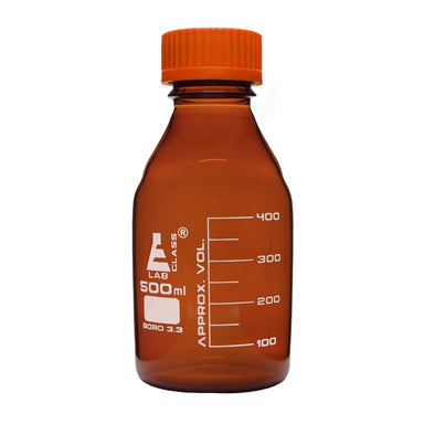 500 ml amber reagent bottle Made from high quality 3.3 borosilicate glass 100 - 400 ml graduation range (50 ml graduations) Screw cap included (GL...
