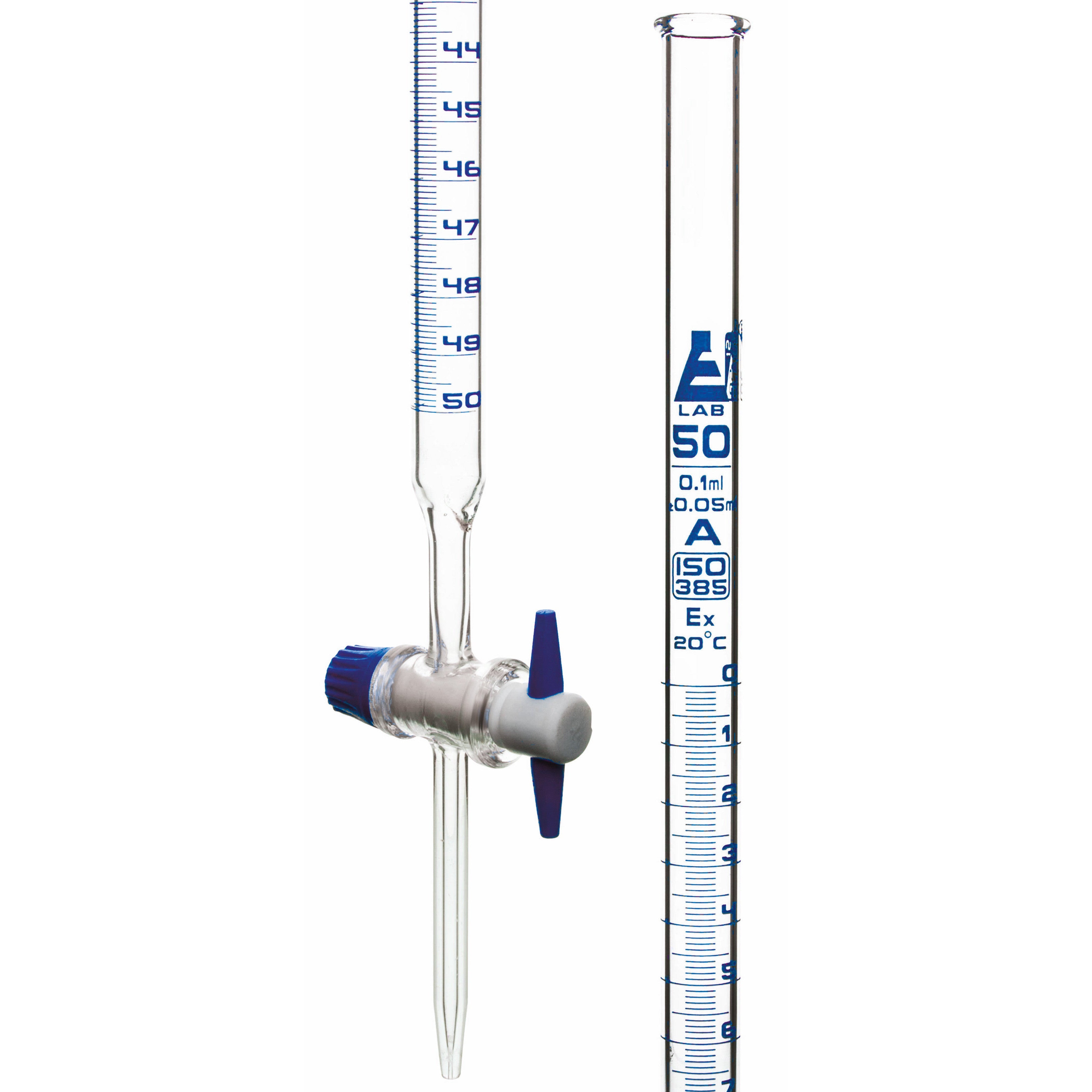 Borosilicate Glass Graduated Burette with PTFE Stopcock, 50 ml, 0.1 ml Graduation, Class A