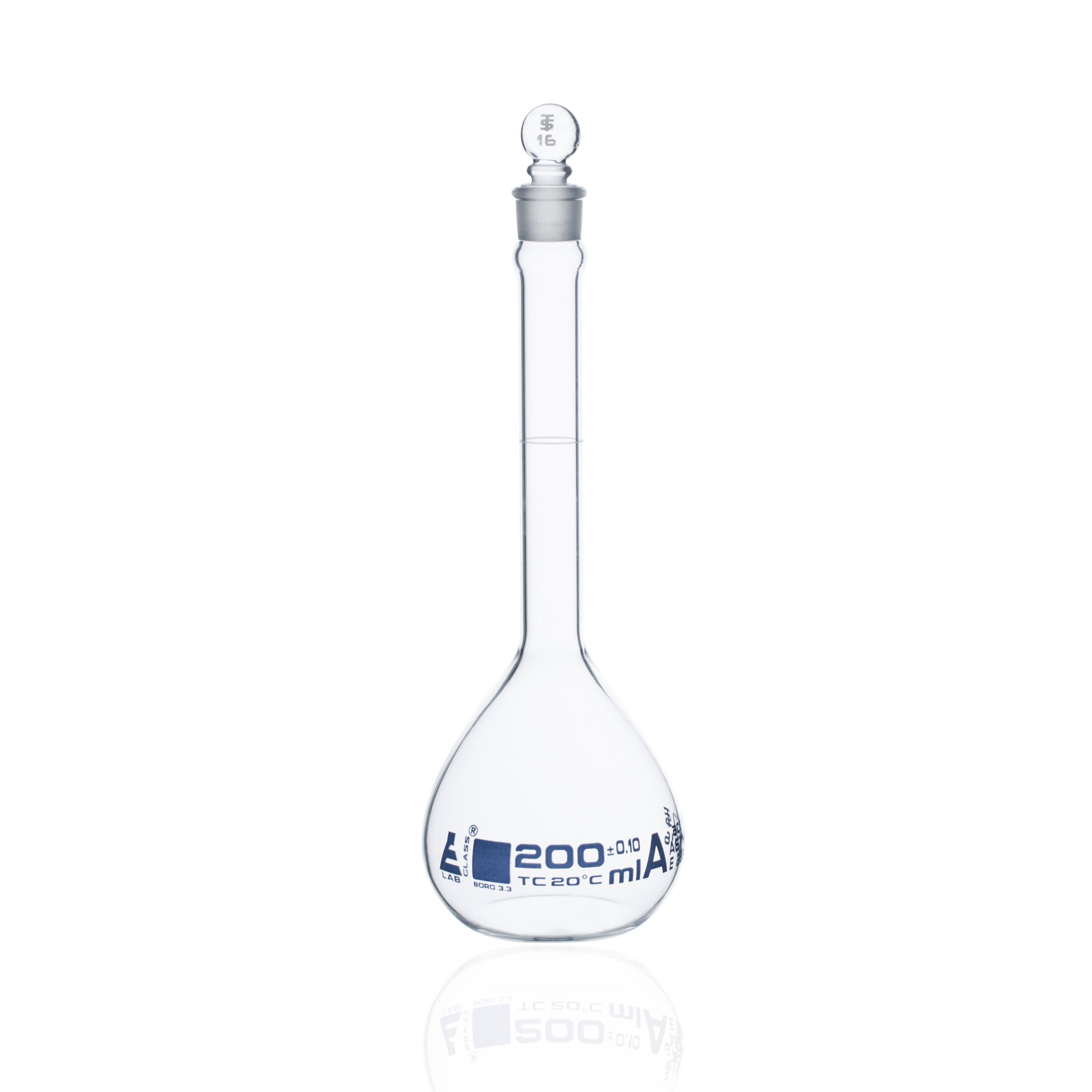 Borosilicate Glass ASTM Volumetric Flask with Glass Stopper, 200 ml, Class A, Autoclavable