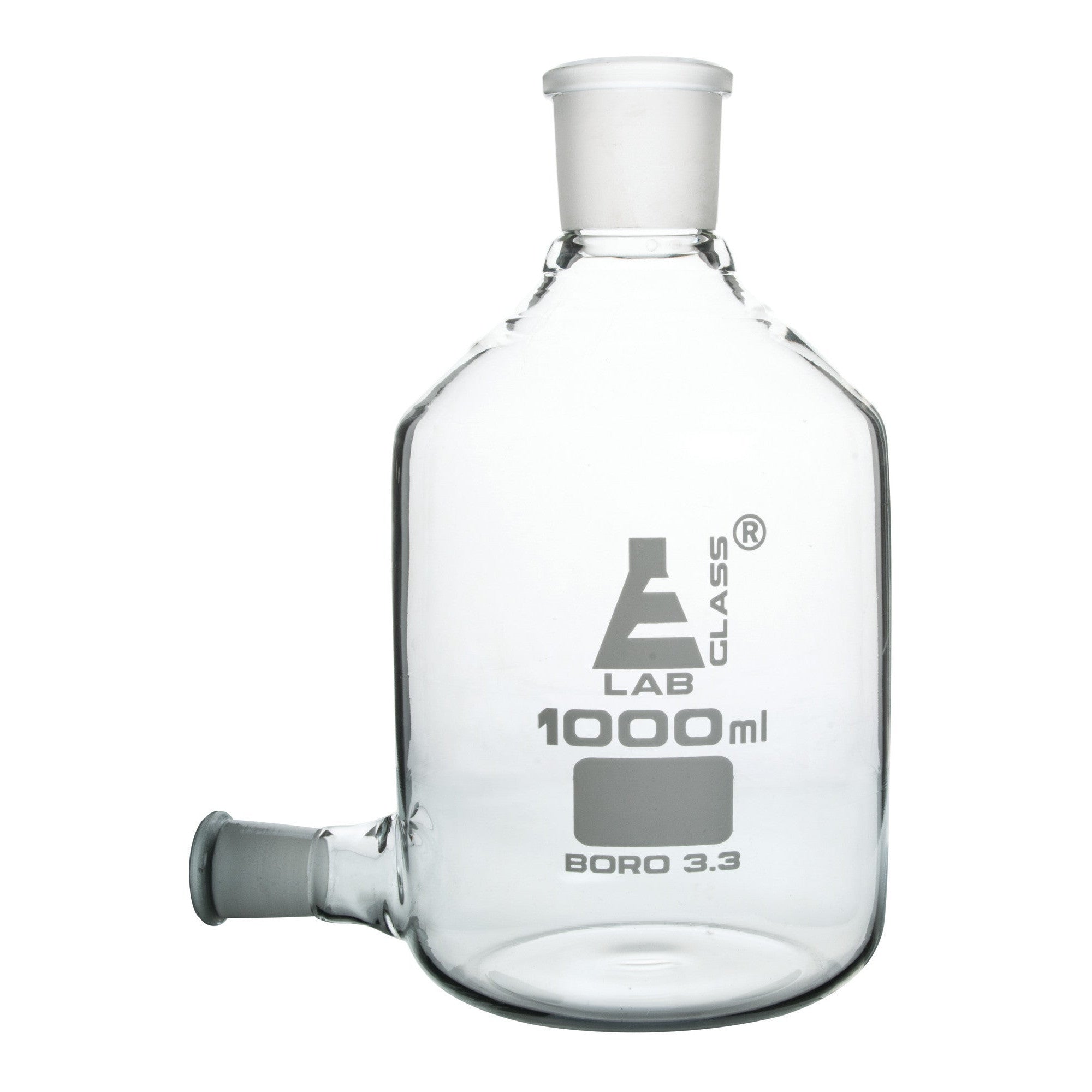 Borosilicate Aspirator Bottle with Outlet for Stopcock, 1000ml, Autoclavable
