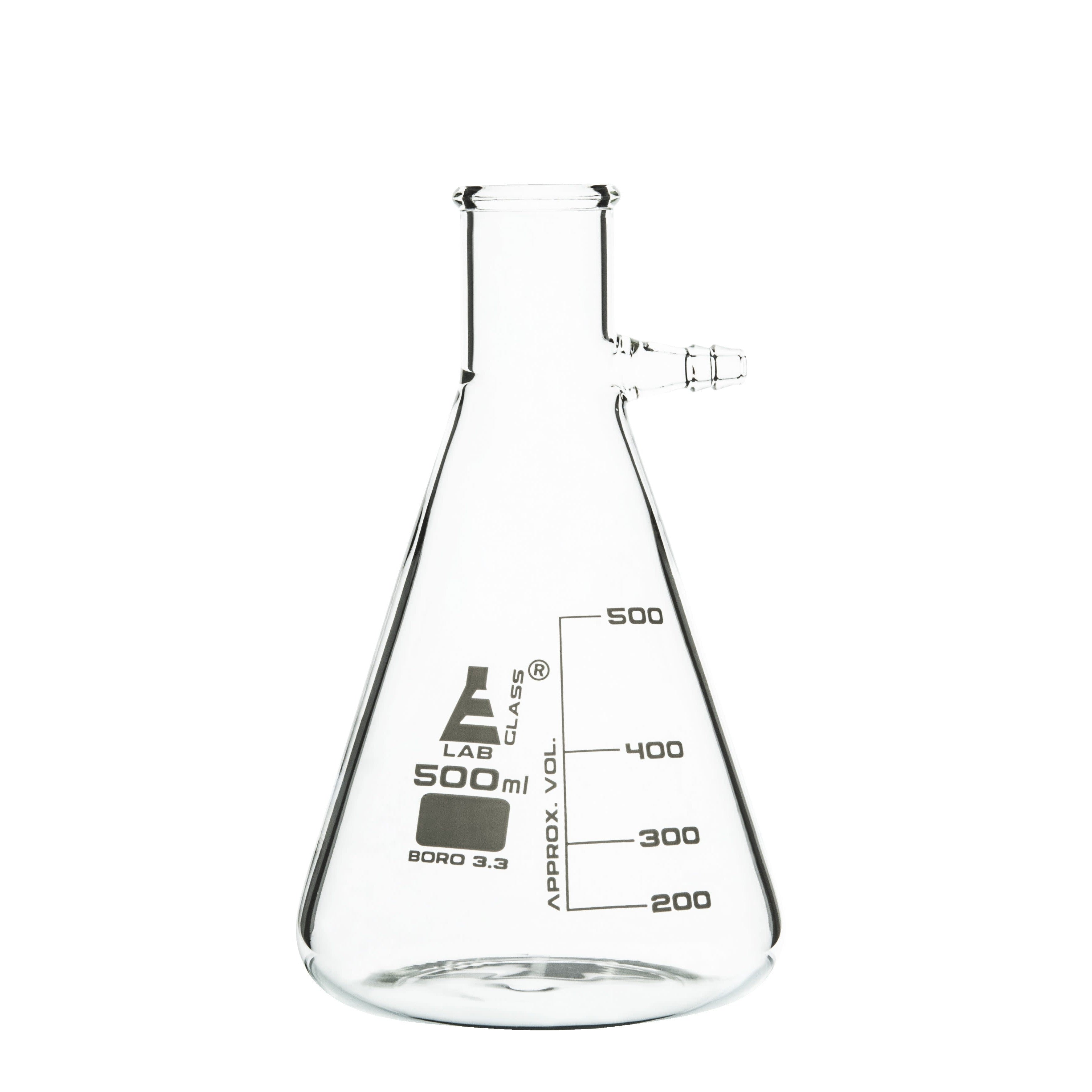Borosilicate Glass Filtering Flask With Glass Connector, 500ml, Graduated, Autoclavable