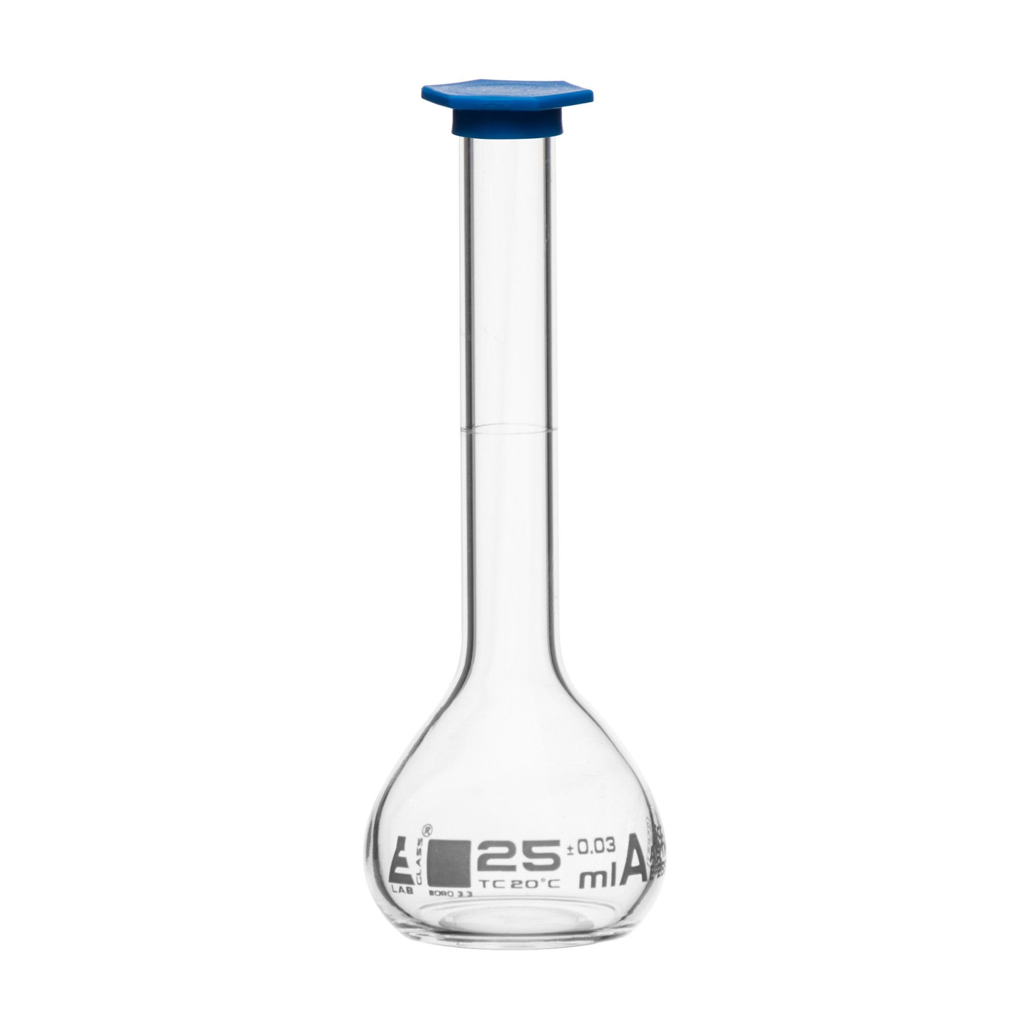 Borosilicate Volumetric Flask with Polyethylene Snap Cap, 25 ml, Class B, White Print, ASTM, Autoclavable