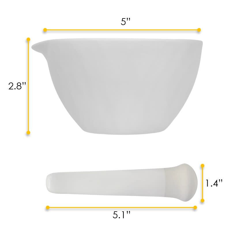 - Mortar has a 9oz (275ml) capacity and measures 5" wide and 2.8" tall