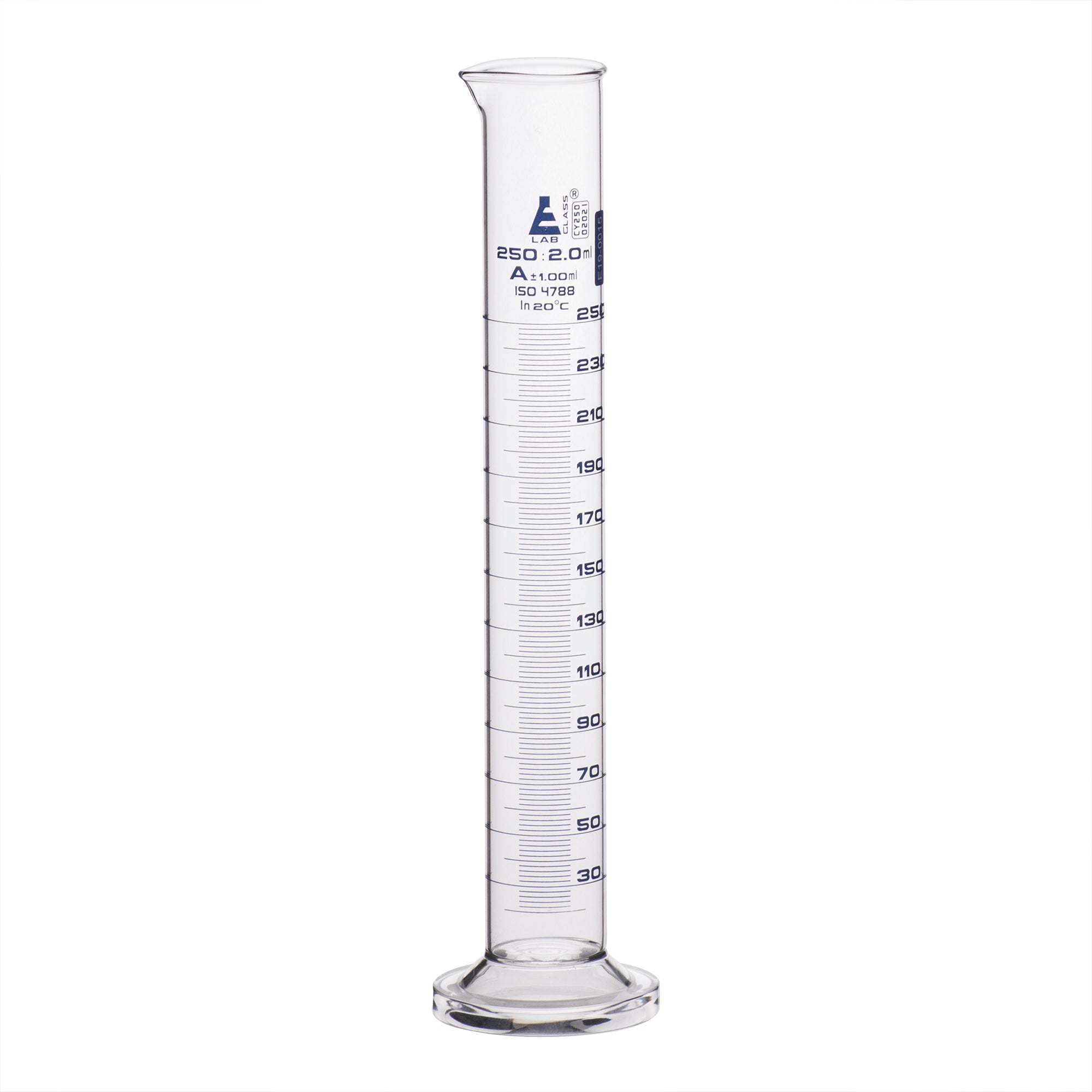 Borosilicate Glass Graduated Cylinder with Round Base, 250 ml, Class A with Individual Work Certificate