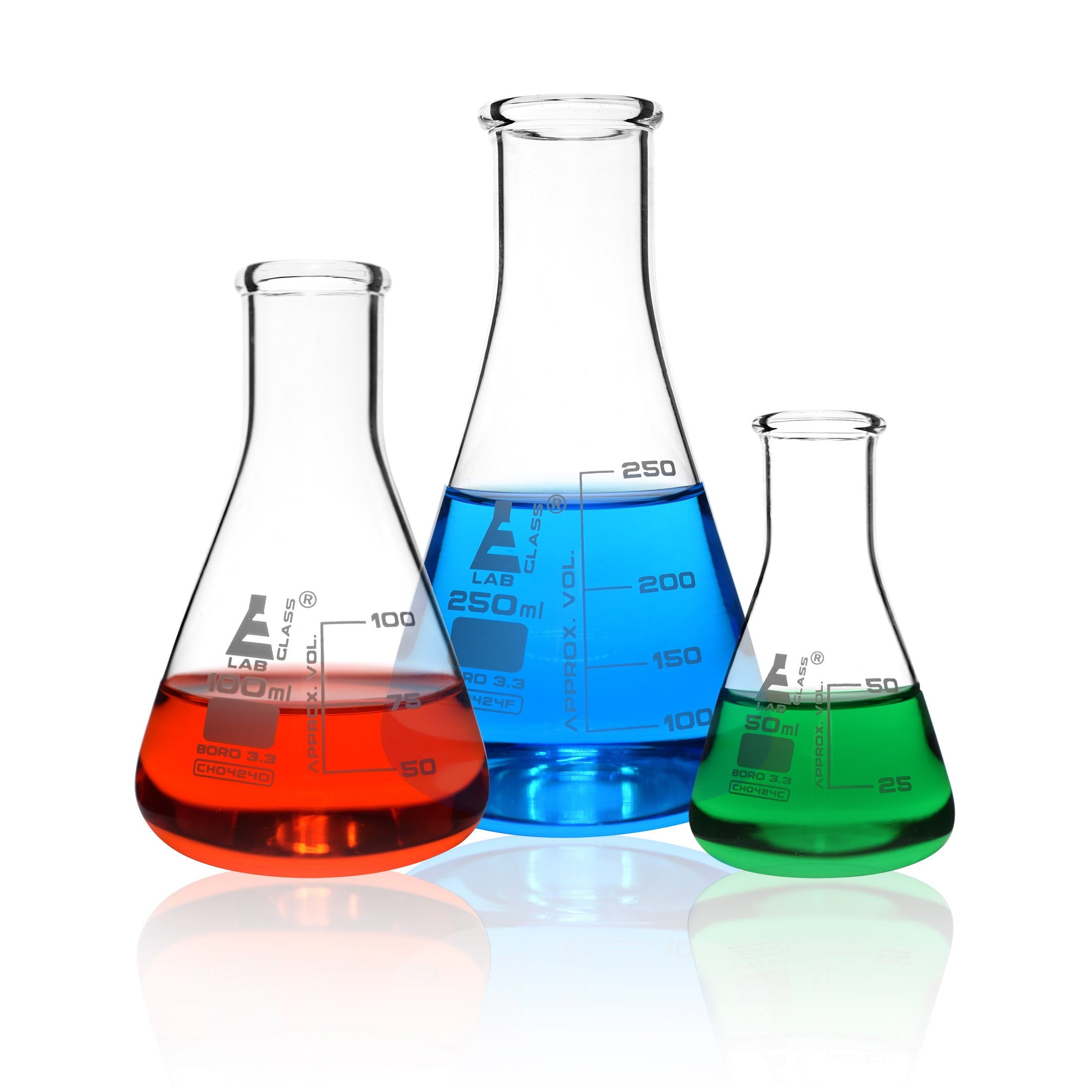 - Includes (1) 50 ml, (1) 100 ml, (1) 250 ml flasks