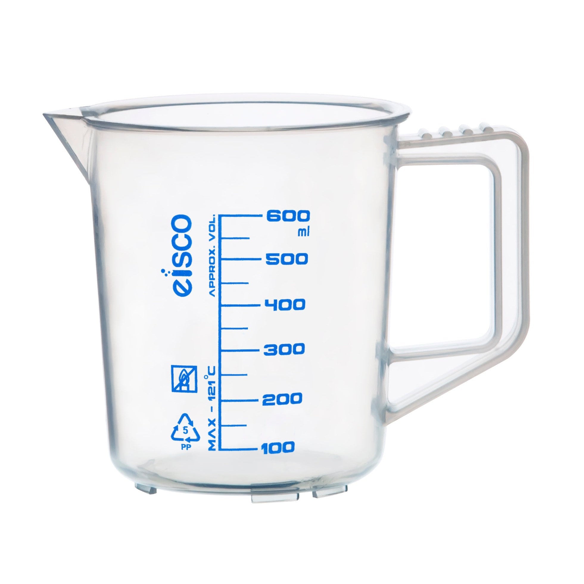 Polypropylene Measuring Jug with Handle and Spout, Short Form, 600 ml, 50 ml Graduation, Autoclavable