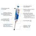 - Slip-resistant thermoplastic eleastomer (TPE) body grip to minimize the transfer of body heat to the micropipette resulting in high accuracy even with continuous use